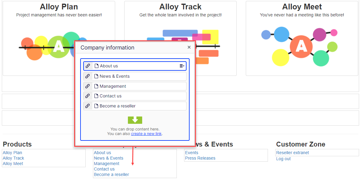If you want to use a link collection in, for example, your page footer, you can use a similar approach. The main difference is that you no longer want this data stored on each page; instead, you want to edit it once and see the page footer updated on all pages.