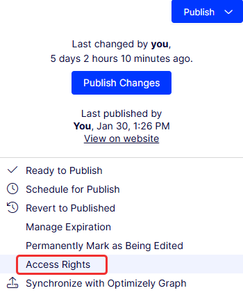 Select Publish Changes > Access Rights.