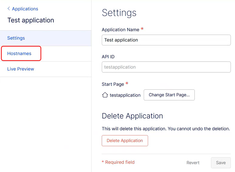 Select Advanced > Hostnames to configure the application further. You can edit an existing hostname or create another one. Configuring hostnames in CMS (SaaS) ensures that previews work correctly and links in Optimizely Graph are accurately resolved.