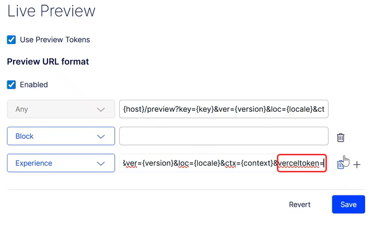 Use Preview Tokens – Automatically append preview tokens to the preview URL you use.