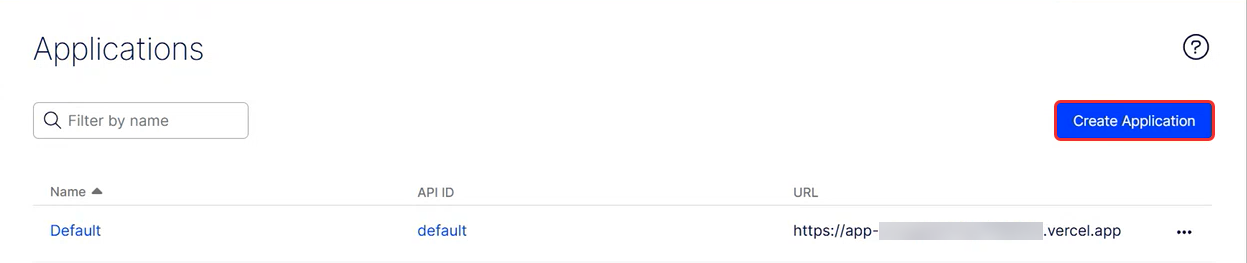 Enter the Application Name and click Create Application. The application displays on the Applications panel.