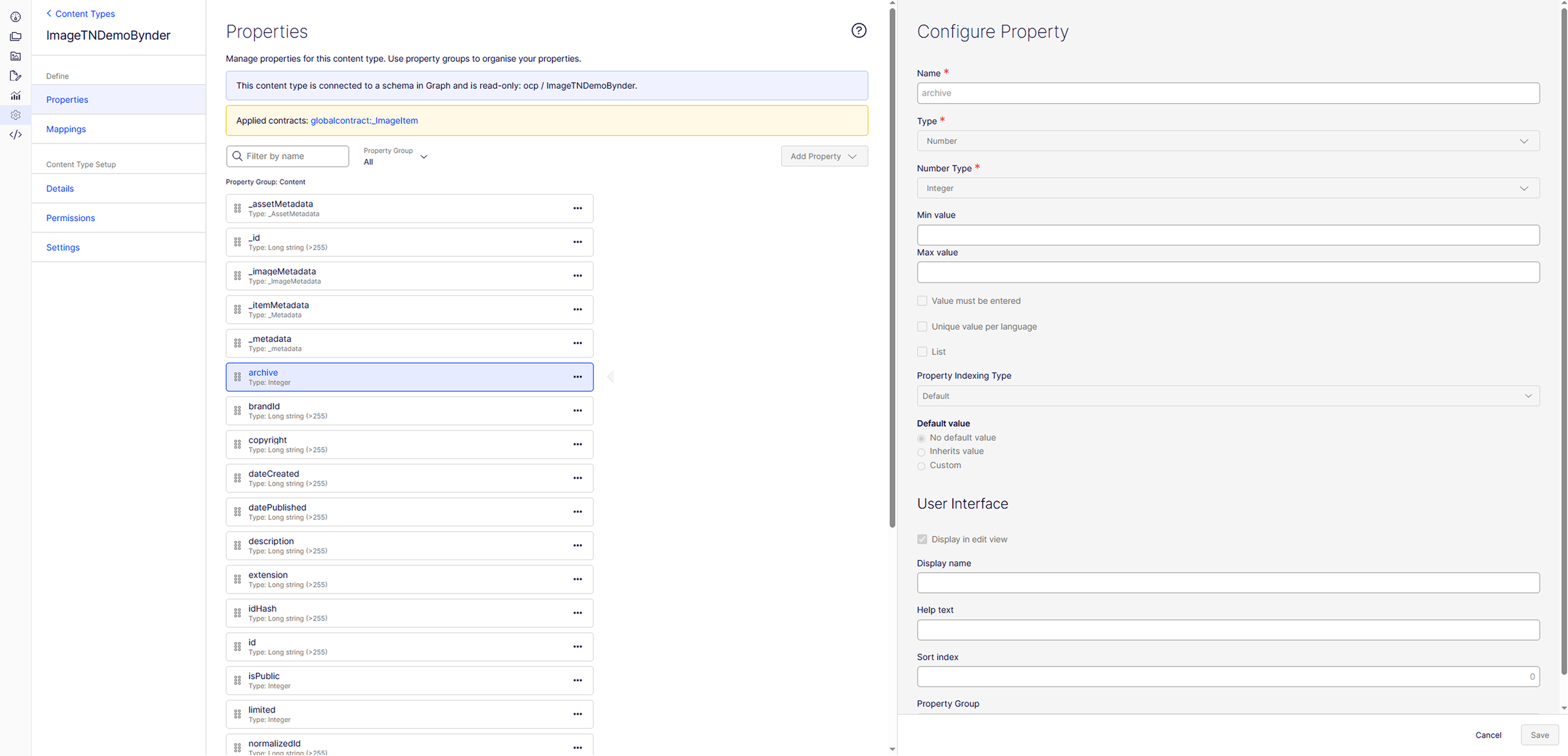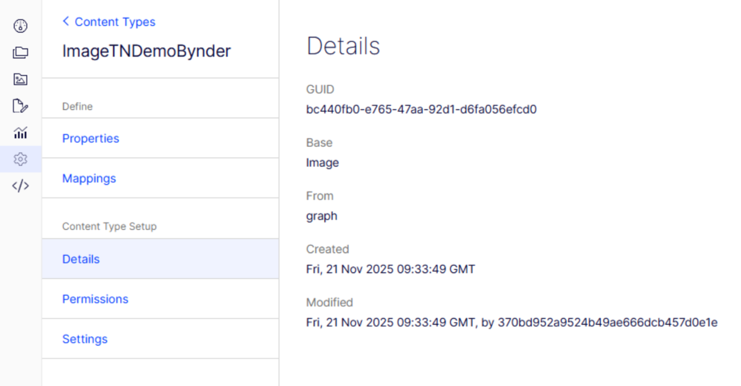 When you connect to an Optimizely Graph schema, CMS creates a connected content type. Connected content types mirror the external schema but are read-only. Only a limited number of settings can be updated in CMS.