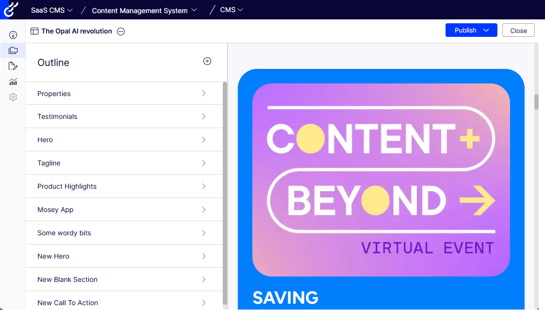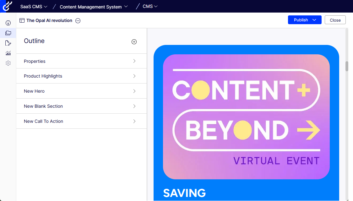 Click Create. CMS (SaaS) creates the new page loaded with the template you selected (or nothing if you selected Blank Experience).