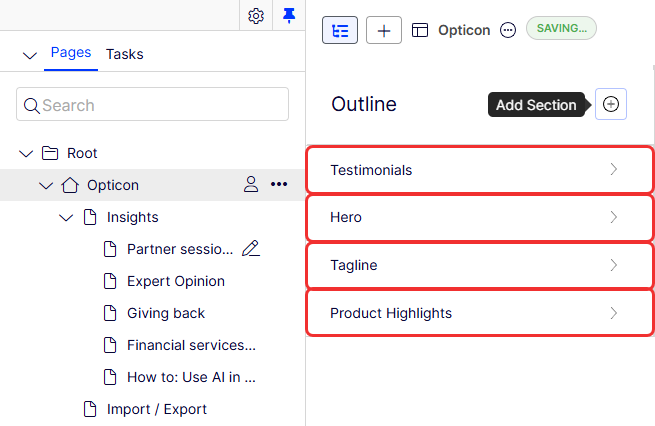 Visual Builder is the editor interface in Optimizely Content Management System (SaaS) that makes content creation and layout building intuitive and accessible to non-technical users.