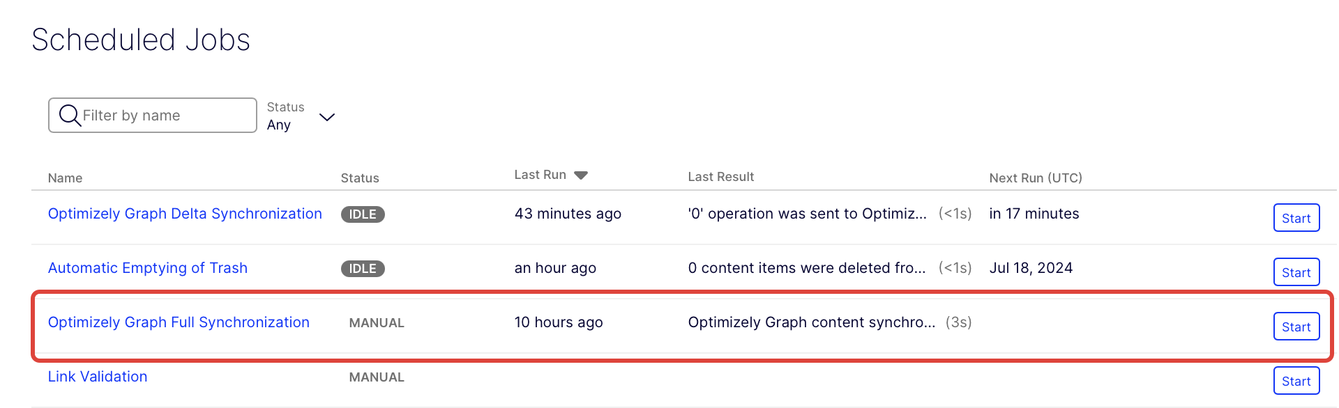 Changes to content and content types in Optimizely Content Management System (SaaS) are automatically synced to Optimizely Graph. However, CMS (SaaS) includes two scheduled jobs to handle some special cases.