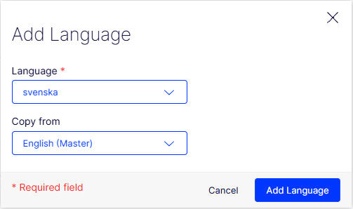When you select an available language such as Swedish (svenska), the Add Language dialog box displays.