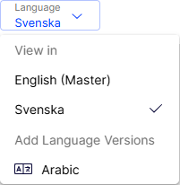 You can use the Versions gadget to see the different language versions when you translate content. By selecting a language in the version list, you can switch to editing in another language using the switch option in the notification bar.