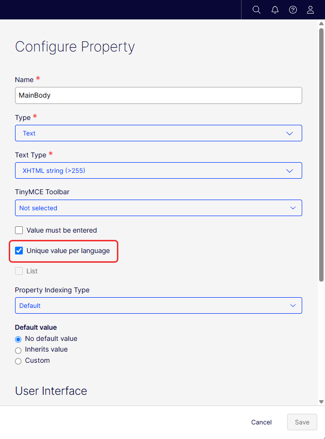 ImportantTo ensure that your properties (elements) are translatable, go to Settings > Content Types, find the element, click on each property that should be language-specific and select Unique per language. See Define language-specific properties.