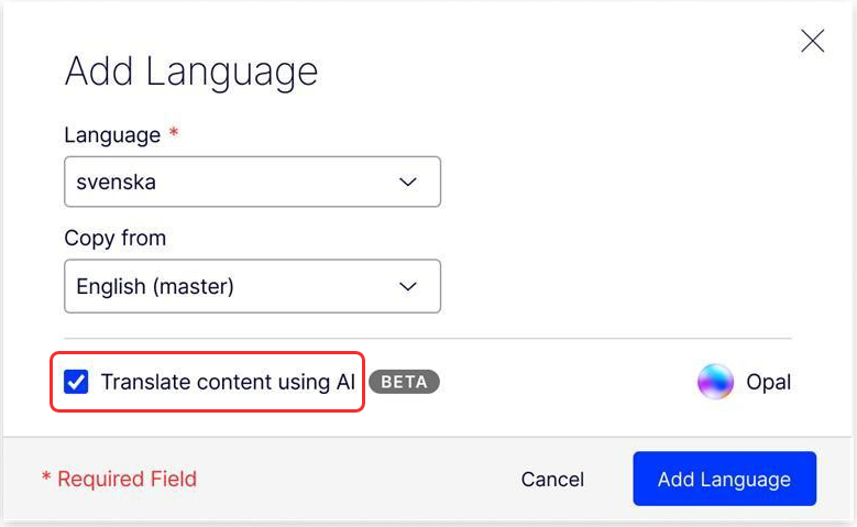BetaYou can use AI to automatically translate content while the feature is in beta. Contact Support to turn the AI feature off.