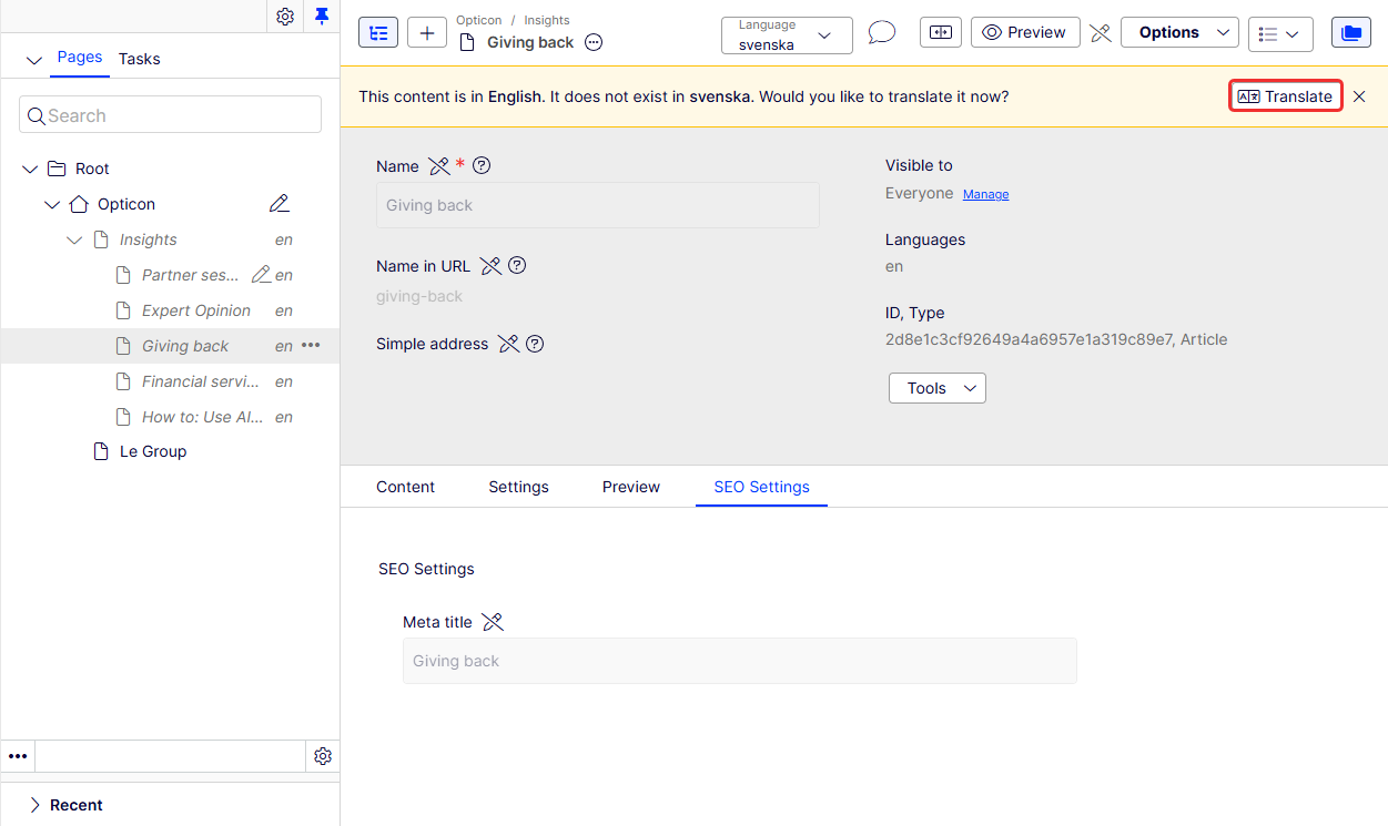 Translate content into other languages in Optimizely CMS (SaaS).