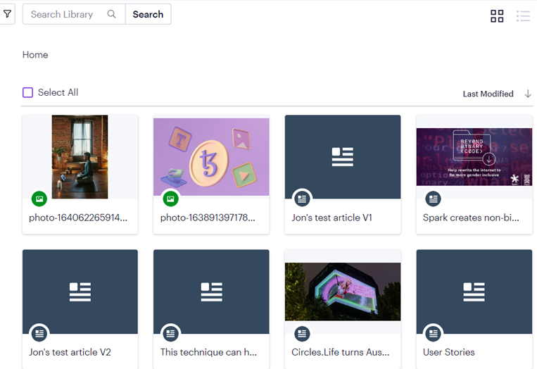 The Optimizely Content Marketing Platform (CMP) Digital Asset Management (DAM) asset picker lets you browse a CMP asset collection.