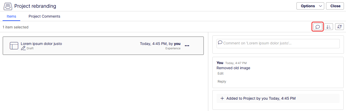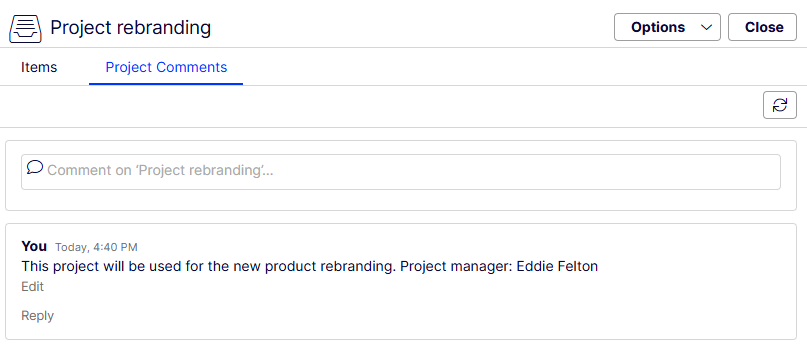 Comment on a project item