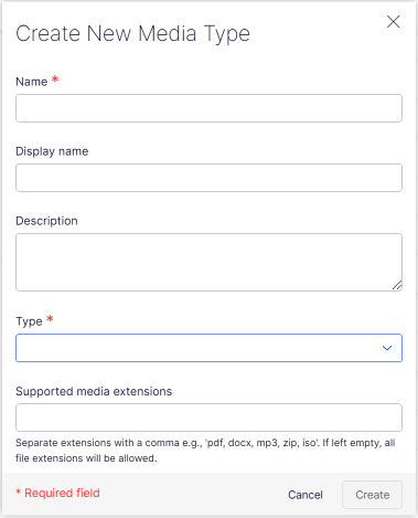 Display name – The name to be displayed in the list of available media types.