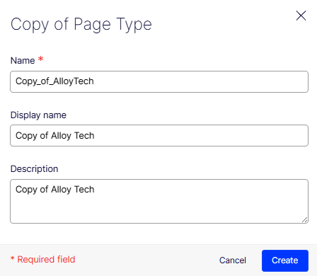 Copy of... displays in the Copy of Page Type dialog box. Enter the text you want and click Create.