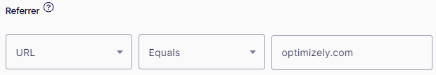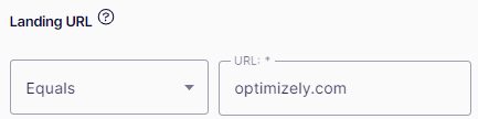 Landing URL – Matches the URL with which the visitor enters the site. You can decide if the landing URL is equal, starts with, or ends with the with a specified value. For example, contains