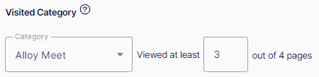 Visited Category – Select one of the website's page categories. You can also select a number of pages that use the category and were visited. The visitor must have visited the specified number of pages to which the category is applied. For example, Category Alloy Meet viewed at least 3 pages out of 4 pages.