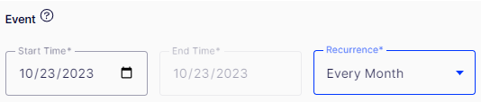 If Every Month or Every Year recurrence type is selected, End Time is disabled.