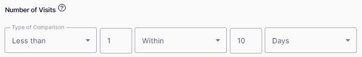 Number of Visits – Matches the number of times the visitor has visited the website. You can specify Less than, Equal, or More than within several days (weeks, months, or years), or since a date, or in total. For example, Less than 1[visit] within 10 days.