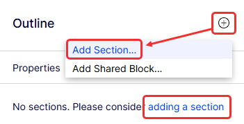 Click Add Section (+) > Add Section (or the link below it) to start a new section.