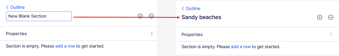 Visual Builder creates a New Blank Section, which you can rename by clicking the name or selecting More (...) > Rename and entering another name.