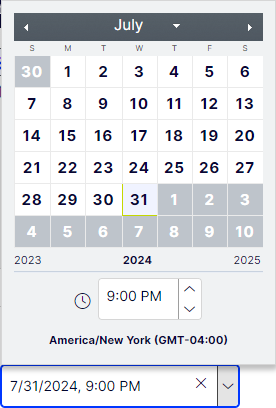 The DateTime property renders a field in the All Properties edit view where you can enter a date and time, or specify them from the calendar picker.
