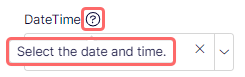 This topic describes the attributes of the DateTime property type that stores the date and time. The following image shows a DateTime property type example.