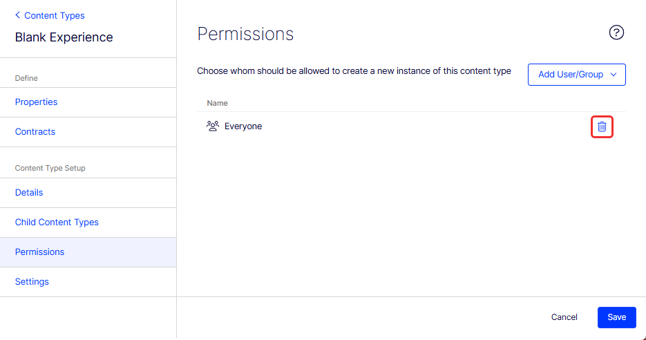 Set permissions for content type