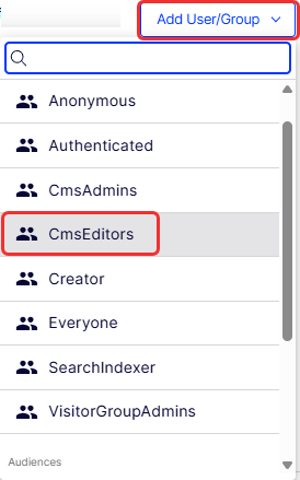 Select Add User/Group > CmsEditors (or another group or user).