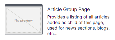 Description – Enter a description for the content type, which displays when you are selecting a content type. The following example shows the Article Group Page page content type with its description.