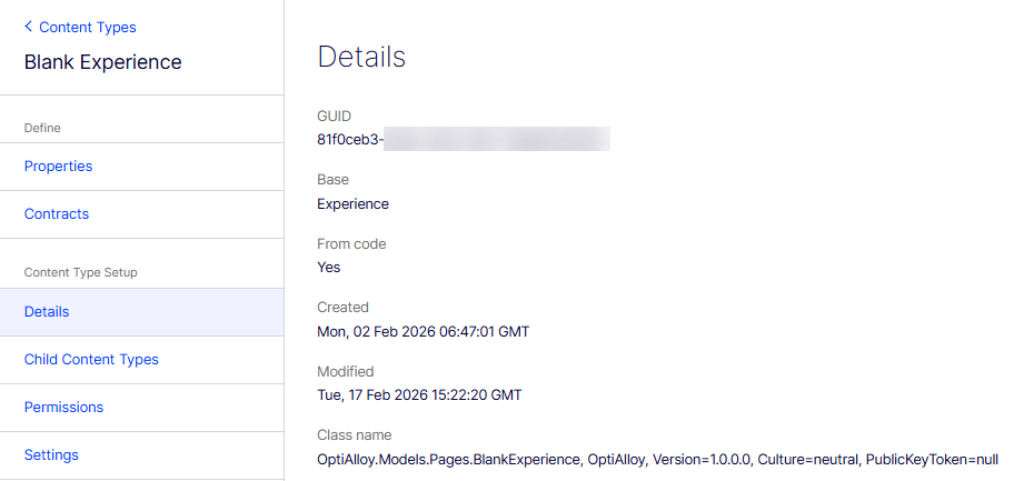 - GUID – The content type's GUID.