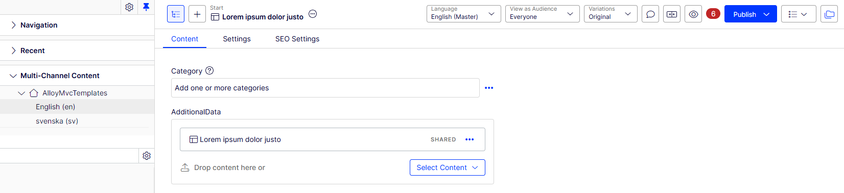 - Multi-channel content has the same root as For All Sites.