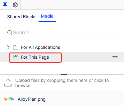 For This Page or For This Block – This is a local folder. Its content is available only for a specific page or block and cannot be accessed by others. It is useful, for example, if you have images for a specific purpose that must only be used for a page or block.