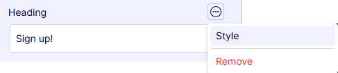 Enter text into the Heading element. You can select More (...) > Style to display the heading based on styles set in the CMS. See Select Visual Builder styles.