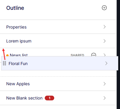 An outline is a list view of your sections. You can drag and drop a section to any order or go to the content you want to edit by hovering over the section in the preview or the outline.