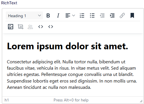 Enter text into the RichText element. See also Edit content using TinyMCE.