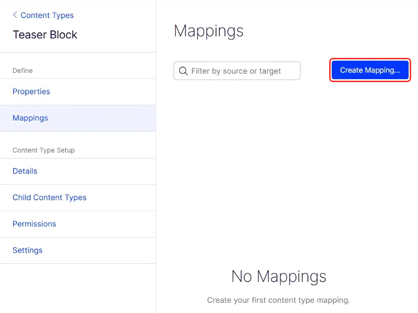 Go to Settings > Content Types and select the CMS content type to map, for example, the Teaser block.