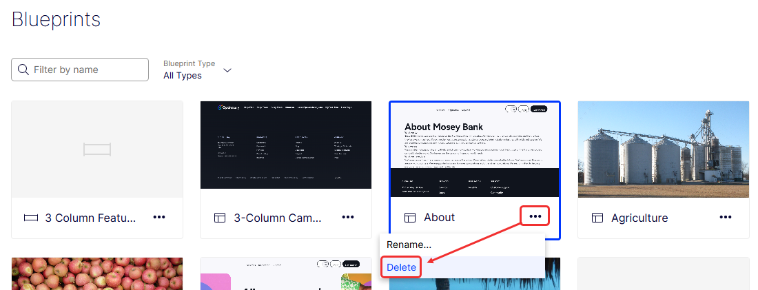 Select More (...) > Delete on the blueprint card.