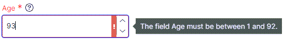 Max value – (Optional) Enter a maximum number value that a user can enter. For example, you can ensure an entered number does not exceed 92.