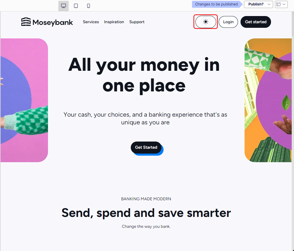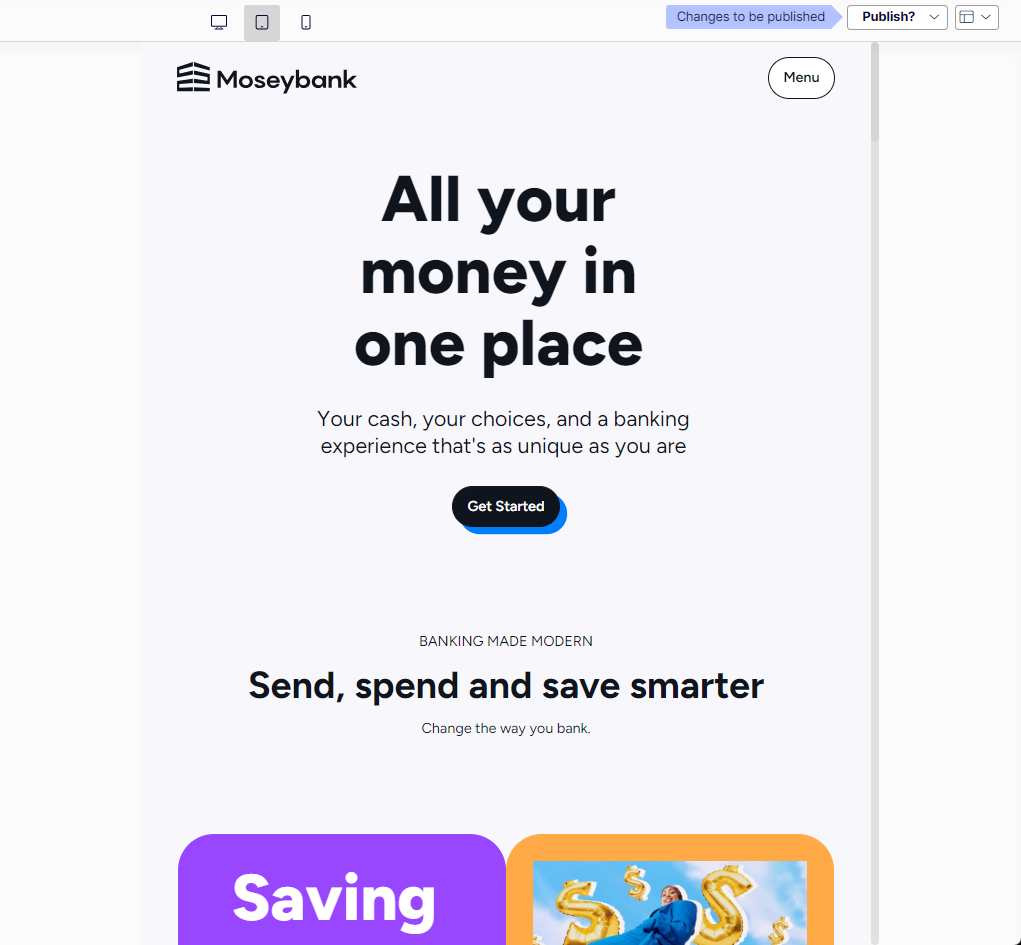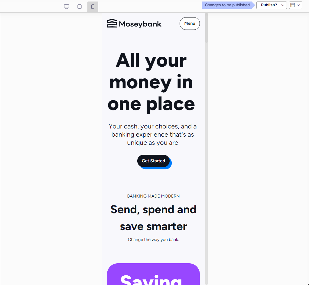Click the view icons to display your content in desktop, tablet, or mobile views. You cannot create custom view options.