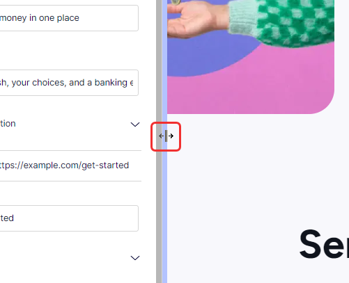 If you need more space, like to edit, drag the vertical bar between the panels to resize them.
