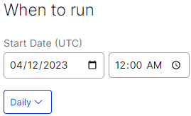 The Settings tab lets you set the desired time interval. Each scheduled job's run time displays in the Start Date field.