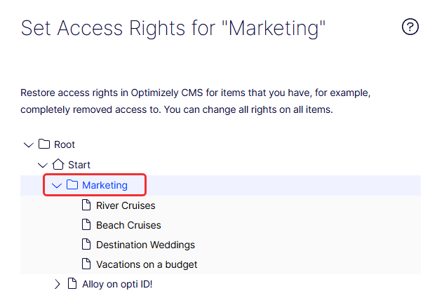 Access rights in Optimizely Content Management System (CMS) 13 control the content visitors see, what editors can do, and where they can do it in the content structure. For example: