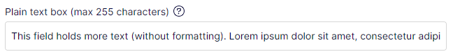 You can use this type for comments and similar needs. In the following example, the Display Name was set to Plain text box (max 255 characters), but you can name it anything.