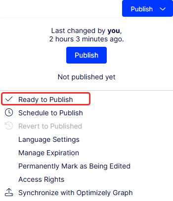 You can publish multiple items from the project overview set to status Ready to Publish. You can set items to Ready to Publish in the following ways:
