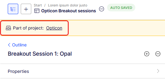 NoteA specific content version can only be part of one project. If you try to add the same version to another project, you are prompted to create a draft. If you create a draft, the version is added to the project.