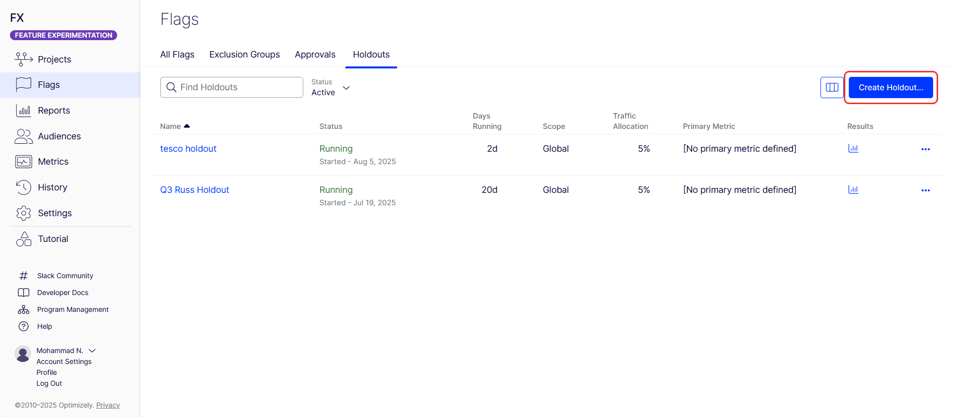 How to apply global holdouts in Optimizely Feature Experimentation.