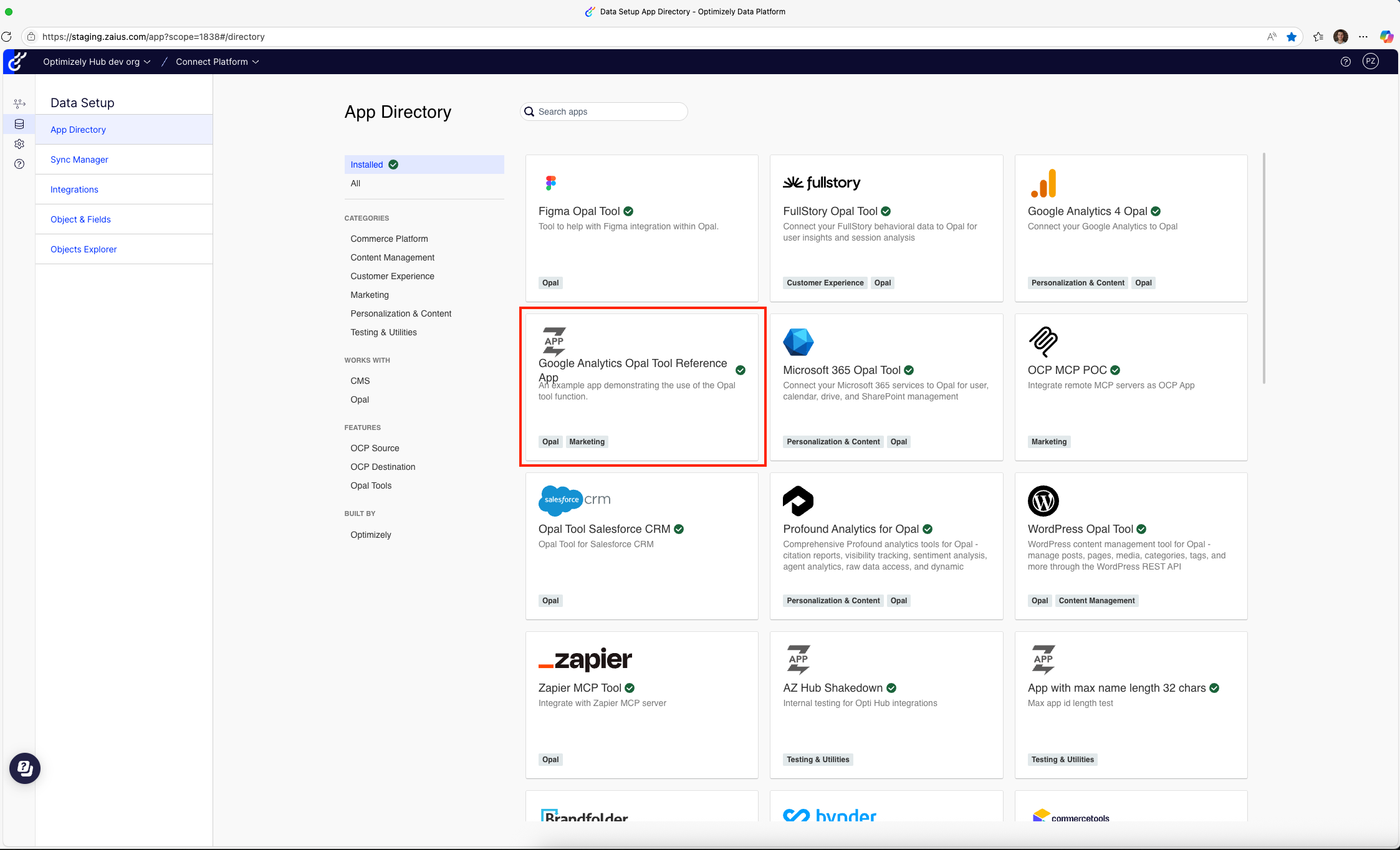 Your app displays in the App Directory of your sandbox OCP instance: