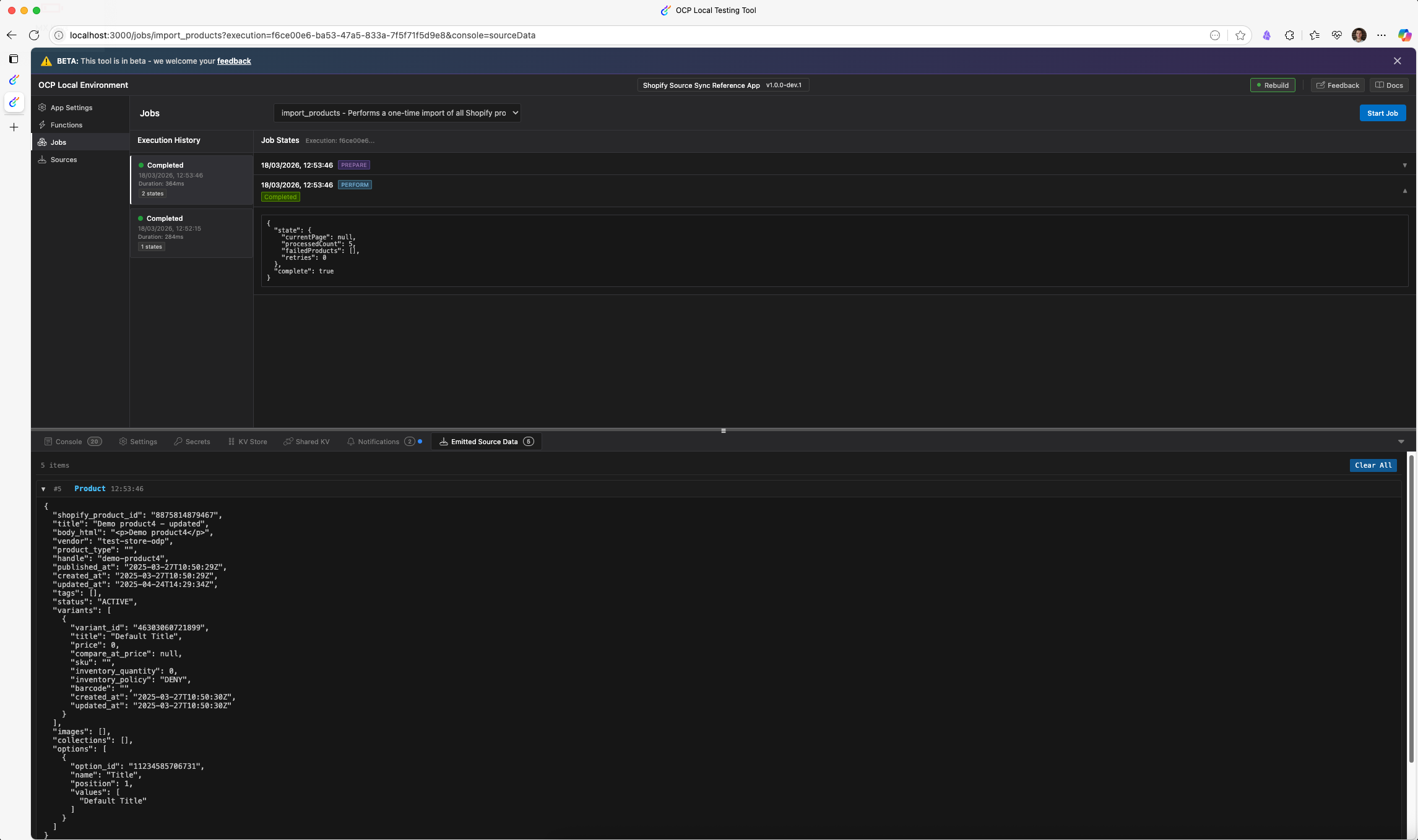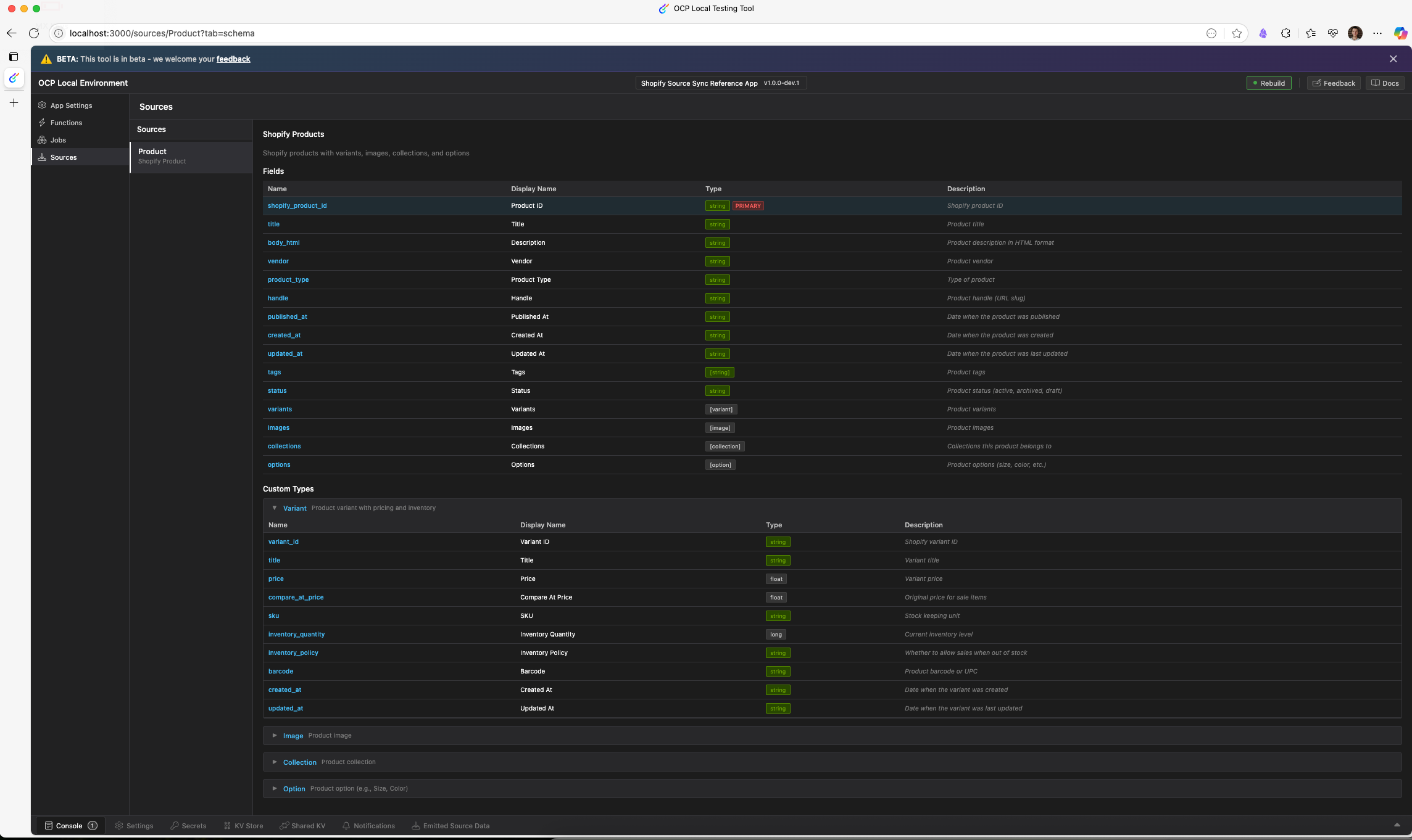 This guide covered building a complete sync source app for OCP, using Shopify product data as a real-world example. Key concepts include: