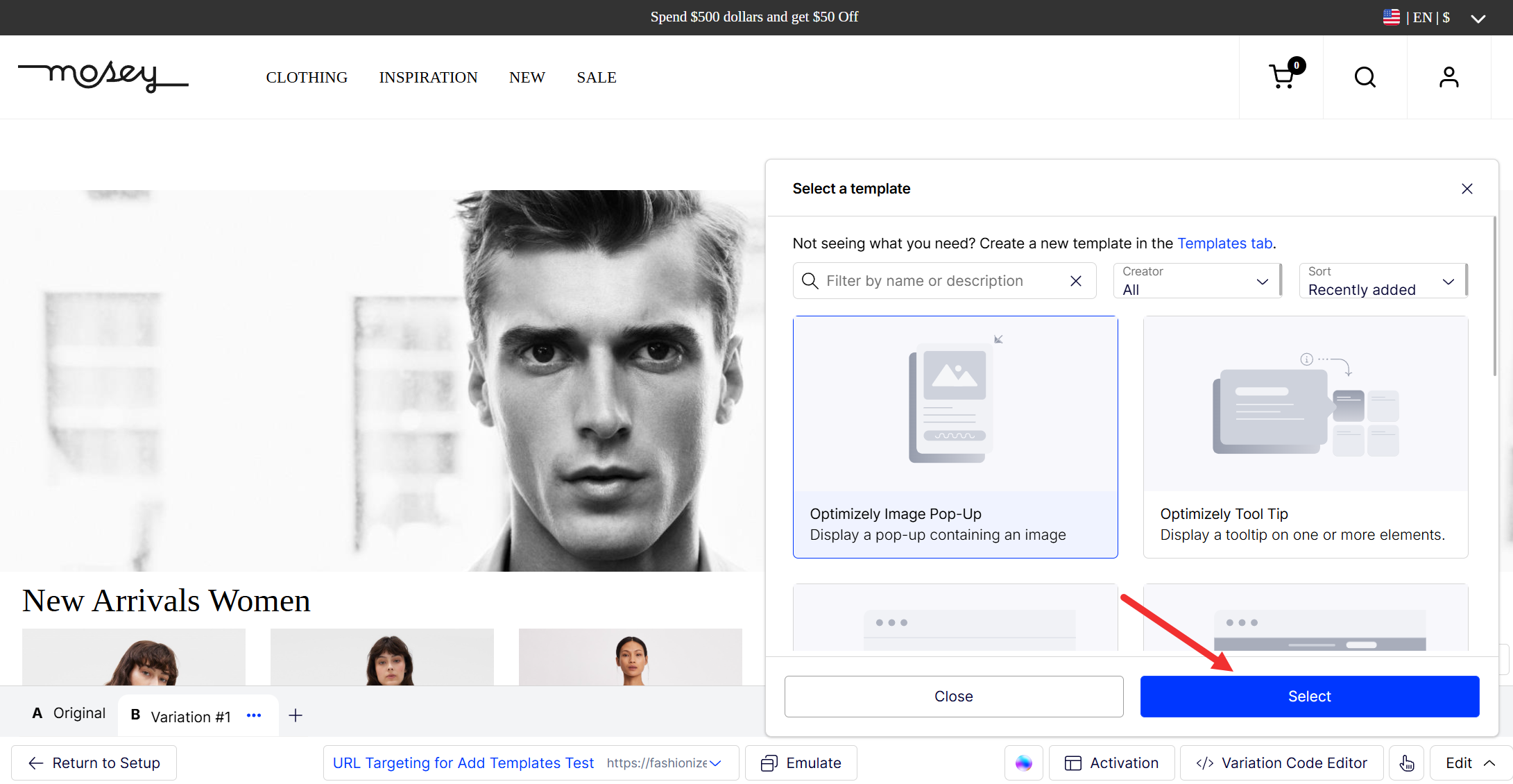 Filter as needed, select the template you want to apply, and click Select.